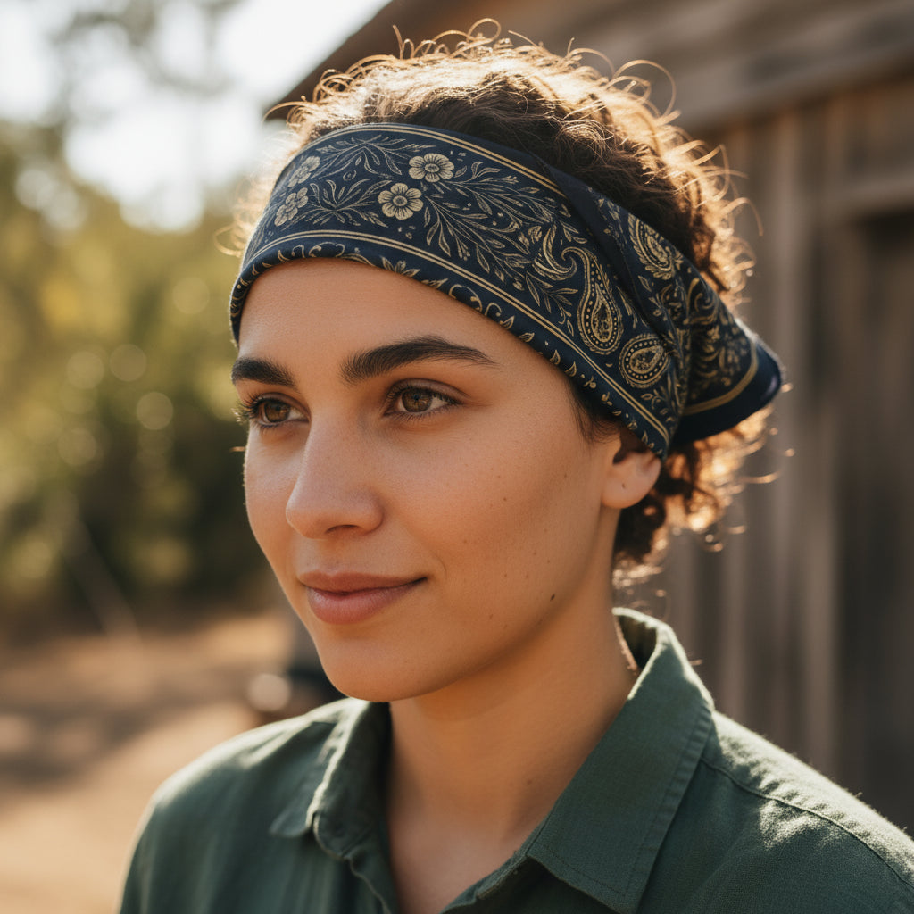The Golden Valor bandana blends deep navy and rich gold to represent courage, legacy, and quiet strength. Its timeless design captures the balance between grit and grace—a piece for those who lead with conviction and carry pride in every step. Whether worn during workouts, on game day, or out in the world, it stands as a symbol of resilience and unity.