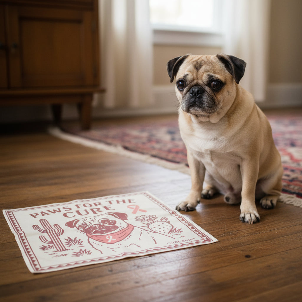The Paws for the Cure bandana brings warmth, love, and a touch of playfulness to the fight against cancer. Featuring an adorable pug surrounded by soft pink tones and gentle design details, it symbolizes comfort, loyalty, and the healing power of companionship. This bandana is a tribute to the furry friends who remind us to keep fighting with heart and humor, no matter how tough the battle gets. Perfect for both pets and their humans, it’s a reminder that support comes in all shapes, sizes, and wagging tails.