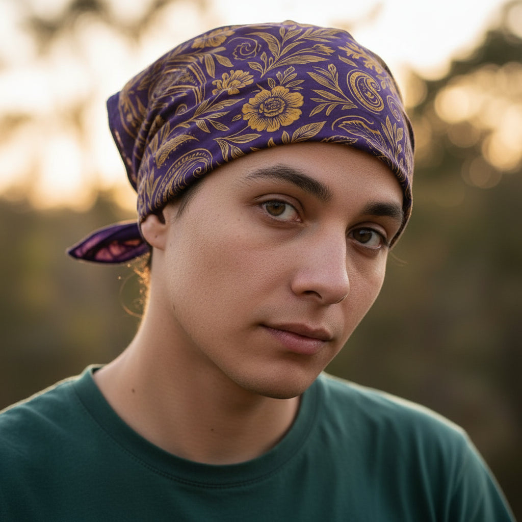 The Royal Heat bandana embodies boldness and confidence. With striking gold and deep purple tones, it brings energy, grit, and timeless style to any look. Built for both performance and comfort, it is designed to handle game days, workouts, and everyday wear with ease. Soft, breathable, and moisture-wicking, it keeps you cool no matter how intense the day gets.