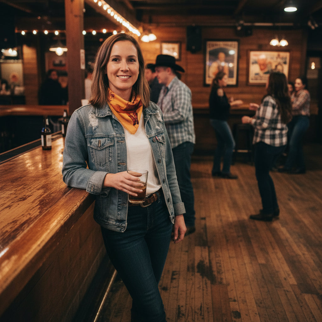 Sunset Spirit captures the calm confidence of open skies and golden horizons. With warm tones of red, amber, and sunlit orange, this design embodies freedom, strength, and reflection, a moment of peace before the next big adventure. Inspired by the strength of the modern cowgirl, it’s a nod to independence and quiet resilience.